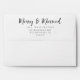 a modern minimalist simple black and white Merry Christmas holiday envelope. Which features a plain white colour with black calligraphy script typography of Merry and married . Along with the customisable return address.