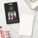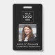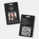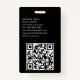 A minimalist modern design with custom logo, photo placeholder and elegant font for custom name and contact information. Classic white font with your details on a chic black background. The name badge can be customised with your name, photo, contact information and social media handles. The QR code can be customised to direct to your website.