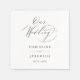 These custom calligraphy wedding paper napkins will add a touch of elegance to your reception place settings. The typography design features a background of white and in modern black script typography it reads "Our Wedding" with your names and wedding date to personalise. Best of wishes for your wedding and marriage! Designed by Susan Coffey.