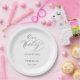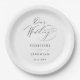 Simple Black White Modern Script Wedding Paper Plate