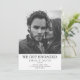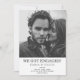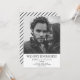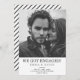This modern engagement party invite features a simple eye-catching typography and your favourite couple photograph. Flip the card over to reveal a black and white diagonal stripe design on the back of the card.