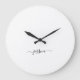 Modern wall clock with a minimalist white design and a simple hand lettered black script. Personalise with your name.