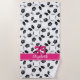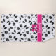 This girls' soccer personalised beach towel features a pattern of small black and white soccer balls arranged in a mirrored pattern - her name and jersey number are customisable - text and name strip colours can be personalised - by katz_d_zynes