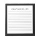 A professional lined notepad with a minimalist design in a black and white color palette. Custom monogram initial and name on a simple white background, framed by a black border. Personalize using the fields provided or use the 'message' button to contact the designer for help.