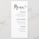 Simple Black & White Wedding Table Menu