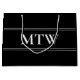 This black gift bag has white text. You can edit it to show the correct monogram. White lines are above and below the text.
