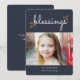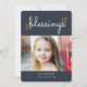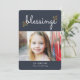 A sweet wish for blessings from your family to theirs is the message with this simple and modern design for a Holiday greeting. Hand lettered cursive font is charmingly casual and contemporary and accented with small springs of holly berries. On the back is room for your personal message/greeting or easily customise it with additional photos if you wish.