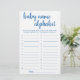 "ABC Race Baby Name Game" Simple baby shower or gender reveal party alphabet race game card featuring a fun, casual hand-lettered script. The classic design includes a modern handlettered quote typography overlay. For other colours or matching products, please visit the JustFharryn Zazzle store, or contact the designer, c/o Fharryn@yahoo.com All rights reserved. #bohochic #zazzlemade