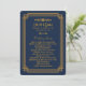These wedding programs feature a blue and gold colour palette, a geometric frame, and other stylistic details all inspired by Art Deco and the roaring twenties. You can customise the sample text fields to your liking.