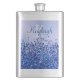 Sip in style with this classic flask, featuring a refined blue brushed metal design adorned with glitter accents. Personalise it with your monogram name and initial for a distinctive touch. Perfect for carrying your favourite beverages, this flask combines timeless elegance with practical functionality, making it a standout accessory for any occasion.
