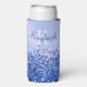 Keep your seltzer perfectly chilled in style with this slim can cooler, tailored for women who appreciate a touch of glamour. The sleek blue brushed metal design, accented with glitter, adds a chic and modern flair. Personalise it with your monogram name and initial for a one-of-a-kind accessory. Whether you're at a picnic, party, or just relaxing, this cooler ensures your drink stays cold and looks fabulous.