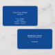 This blue business card will definitely have you stand out. It is enhanced with simple, bright white type and has rounded corners. It is shown on the standard matte paper;. Contact us at prettyfancyinvites@gmail.com, if you need help customising this card or if you need additional coordinating items.