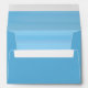 This design features a simple watercolor blue minimalist, a basic clean coordinating matching, a 5x7 a7 envelope size, a modern clean simplistic classic, a traditional simple classy style design, a return address printed back flap, a matching coordinating, a simple envelope mailing supplies, a basic simple plain envelope, a blue ocean sea water lake theme
