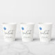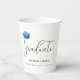 Elegant and modern graduation paper cups with an illustration of a light blue graduation cap. The text has a beautiful script typography. Great for your kids' graduation party. Illustrated and designed by Patricia Alvarez.