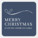 Simple blue modern Merry Christmas heart ornament custom family name sticker