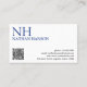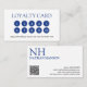 Modern QR Code loyalty card featuring a simple and minimal blue and white design with your monogram in a bold font along with your business name in the upper left corner. Your contact info is in the lower right corner.