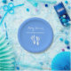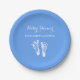Simple Blue Newborn Footprints Boy Baby Shower Paper Plate