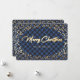 Simple Blue Plaid Gold Foil Christmas Cards