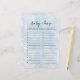 Add some fun to your winter-themed baby shower with the Simple Blue Snowflakes Winter Baby Items Game. Featuring a cute watercolor design with soft blue snowflakes, this baby shower game captures the cosy, festive vibe of a "Baby It's Cold Outside" celebration. Simple yet engaging, it challenges guests to guess baby-related items while enjoying the charm of winter decor. Perfect for a casual and interactive baby shower game, this fun activity will keep your guests entertained and laughing. Whether you're hosting a small gathering or a larger celebration, this snowflake-inspired game adds a delightful touch to your baby shower festivities.
