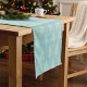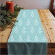 This charming table runner has a soft pale blue background adorned with a whimsical pattern of white pine trees, evoking the tranquil beauty of a wintry landscape that captures the essence of a peaceful, snow-dusted forest. Perfect for adding a touch of elegance to your holiday table.