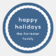 Make your holiday gifts extra festive with this cute simple personalised blue gift sticker. This festive holiday sticker is framed in a white squiggly line and has two custom text spaces. Include "Merry Christmas" "Happy Holidays" "Happy Hanukkah" or any other greeting along with a name or names. This original design by Lea Delaveris Design coordinates with holiday cards, gift wrap and more in the Squiggly collection where you can find a variety of fun colours.