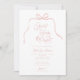 She's tying the knot! Simple Blush Pink Bow Bridal Shower Invitation. A trendy cute hand-drawn style bow and ribbon paired with handwritten fonts. Simple yet playful. The back of the invitation includes a cute hand-wn bottle with a ribbon tied on it. Personalise the bottle label pattern with the first initials of the bride and groom to add that extra special touch. © Kimbellished, LLC