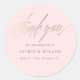 This simple and elegant wedding favour sticker features a shimmering faux metallic gold "Thank You" on a blush pink background, adding an elegant and personal touch to your wedding favours. Customise with your names and wedding date to create a unique keepsake for your guests. The simple yet sophisticated design perfectly complements any wedding theme, making it a beautiful finishing touch to your special day.