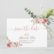 Minimalist Simple Blush Pink Floral Wedding Save The Date Invitation. Used modern script typography on a simple white background with blush Pink and dark pink roses with little green leaves. Fully customisable. Visit my store to see more wedding stuff for this design! (1) For further customisation, please click the "customise further" link and use our design tool to modify this template. (2) If you prefer thicker papers / Matte Finish, you may consider choosing the Matte Paper Type. (3) If you need help or matching items, please contact me.