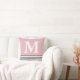 Simple Blush Pink With B/W Stripes Monogrammed Throw Pillow. Perfect for bride & groom, any coupes, anniversary or valentine gifts.