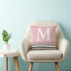 Simple Blush Pink With B/W Stripes Monogrammed Cushion