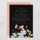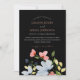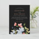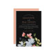 Simple Black and Pink Floral Wedding Invitations - Elegant Botanical Design with Pink Script Typography. Announce your wedding in style with our modern boho invitations showcasing a captivating blend of blue and pink flowers, complemented by lush greenery on a striking black background. The elegant botanical design is accentuated by the use of pink script typography, adding a touch of romance and sophistication. With a minimalist aesthetic, these unique invitations perfectly balance modernity and natural beauty. Capture the essence of your special day with this exquisite combination of blue, pink, green, and elegant script typography, setting the stage for an unforgettable celebration.