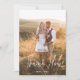 This simple and boho wedding thank you card features your wedding photo on the front, with elegant modern handwritten script typography and a tiny hand drawn heart. The back of the card is black and white and has room for a personal message, along with another wedding photo.