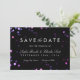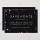 Sparkly bokeh lights shimmer in translucent pink, purple and blue in the background of this darkly glamourous save the date, with simple chic white script and sans serif lettering. Change the text to your own and click "Customise It" to change fonts, and text colour.