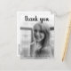 Modern graduation thank you postcard featuring "thank you" in a thick black script handwriting along with the graduate's name and school info over your favourite vertical photo. The backside has your return address and personal message in black over a white background, or you may delete the template if you wish to handwrite your message. A simple design that makes your photo the main feature. This thank you postcard is perfect for a girl graduate.