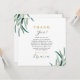 Simple and modern botanical quinceanera thank you card includes an editable thank you message and chic watercolor leafy greenery. This 15th birthday thank you card has a rustic minimal style with a greenery and white back of the card.