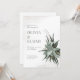 These vintage 5" x 7" wedding invitations feature a succulent bouquet with dried flower accents on a weathered texture background. Placeholders begin with, "Please join us for the marriage of," the wedding couple names, date and time, venue with address and, "reception to follow."