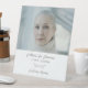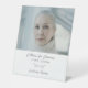 Honor your loved one with a beautifully designed pedestal tabletop funeral photo sign, created to serve as a heartfelt tribute during a funeral, memorial service, wake, or celebration of life. This elegant display sign features simple floral motif with "in loving memory" phrase. Add your cherished picture along with custom name and dates, offering a meaningful way to say in loving memory.
