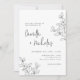 Simple Botanical Monogram Black & White Wedding Invitation