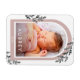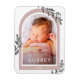 Simple and modern design features grey botanical branches with a feminine pink photo arch and name in pretty script. The year is simply stated in white typography. Perfect to celebrate a newborn baby, or display a special photo.