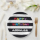 Add your own name to "Simple Bright Colourful Customised Happy Birthday Paper Plates" which are 9 inch diameter  Customise with your own name. Colourful "Happy Birthday xoxo" paper plates with cute message printed onto classic Black and White Stripes background. Fast Worldwide shipping. 30 Day Money Back Guarantee. Proudly made in the U.S.A!