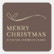 Simple brown modern Merry Christmas heart ornament custom family name sticker