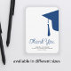 Modern trendy script navy blue and white simple minimalist graduation budget affordable MINI SIZE thank you card template featuring a graduation cap with tassels. ++++++++++ Easy to personalise with your details and custom text!