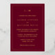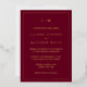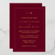 Simple Wedding Invitation featuring a modern yet elegant design with your two letter monogram at the top and your details surrounded by a thin border. This design is printed with real gold foil over a burgundy background. A chic and stylish design that is great for a minimalist couple.