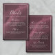 This minimalist wedding details card features a merlot red or burgundy watercolor background with white fonts and a simple white line frame on both the front and back. This card includes essential details about the reception, accommodations, travel, attire, and more. Exuding simplicity and elegance, it ensures your guests are well-informed for your magical evening. The text is presented in a mix of calligraphy script typography and a classic serif font. The simple and elegant design integrates seamlessly with any wedding theme, including traditional, classic, or modern. It works especially well for autumn or fall weddings but can also be adapted to match any season, making it perfect for spring, summer, winter, or any time of the year. The chic jewel-tone watercolor background and white font colours can be customised to fit your specific preferences. Its understated elegance makes it a versatile choice for your special day. Simple Stylish Elegant Burgundy Watercolor Wedding Details Card.
