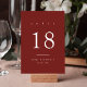 Simple Burgundy Wedding Table Number