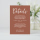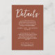 Simple Burnt Orange Script Boho Wedding Details Enclosure Card