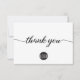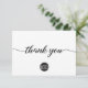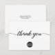 The card features an elegant "thank you" script, its modern typeface embellished with long, flowing tails that add an artistic flair to the minimalist design. Set against a stark and stylish black and white background, the card exudes a chic professionalism that aligns with the integrity and straightforwardness of your business.