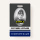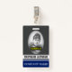 This simple badge design could perhaps be used by the employees of a business or company. The wearer's name can be personalised, as can the company/business name appearing near the bottom. A custom portrait image can also be used.