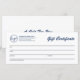 Simple and professional business gift certificate featuring a minimalist design with your logo at the top left along with your contact information in navy blue over a white background. The title "Gift Certificate" and the message "A Gift For You" on the back are in a modern brush script font. The The fonts and colours may be changed to any you wish by clicking the "customise" button. This professional Gift Certificate is great for a makeup artist, hair stylist, beauty salon or spa.