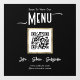 Simple text with business guest option. Qr code for food or service menu with website or social media connection. Like share subscribe